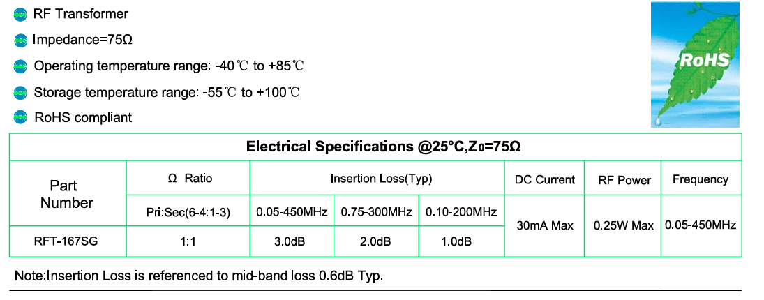 Mentech RF transformaer RFT-167SG